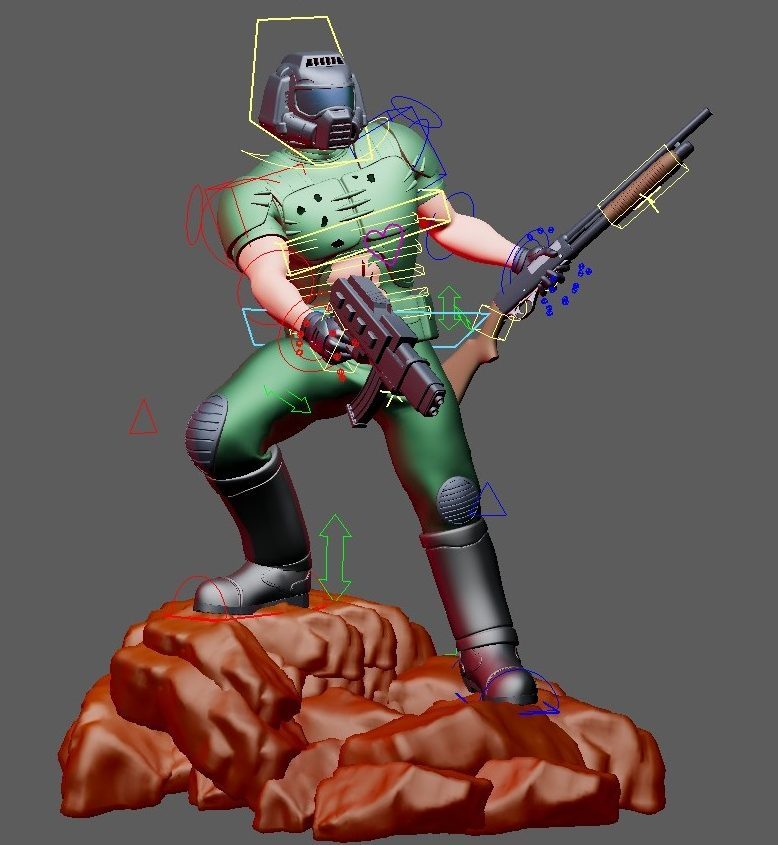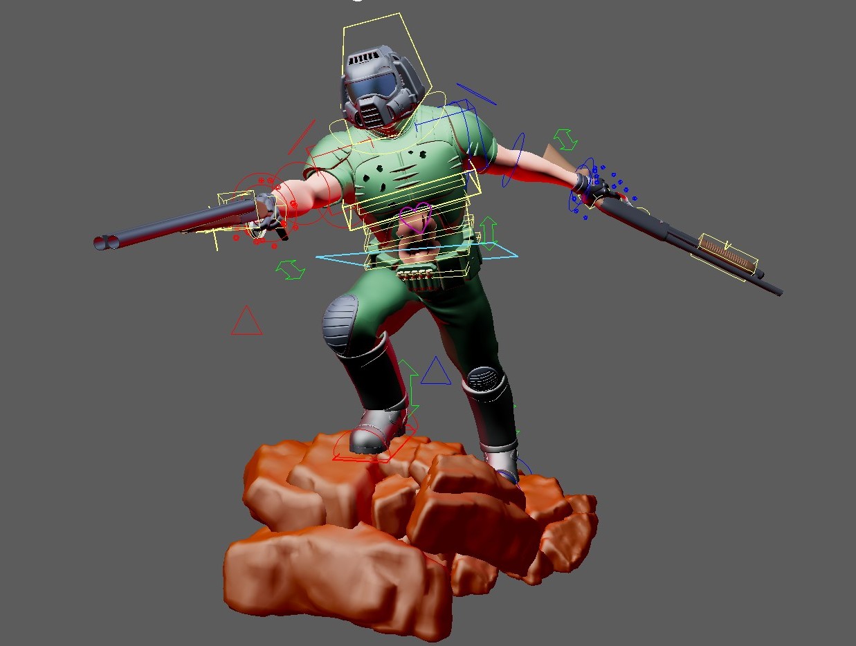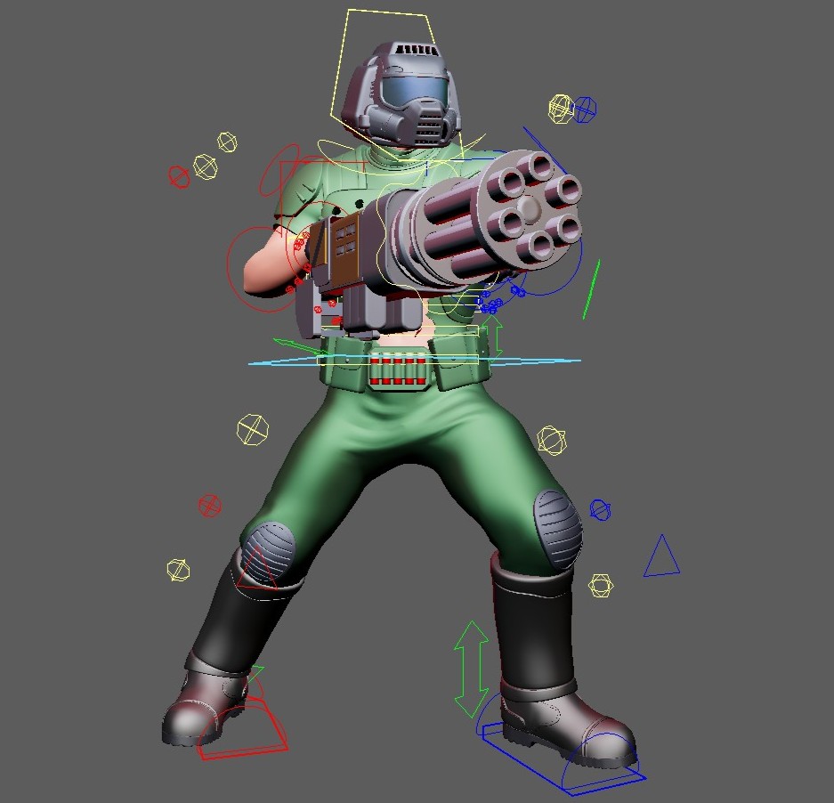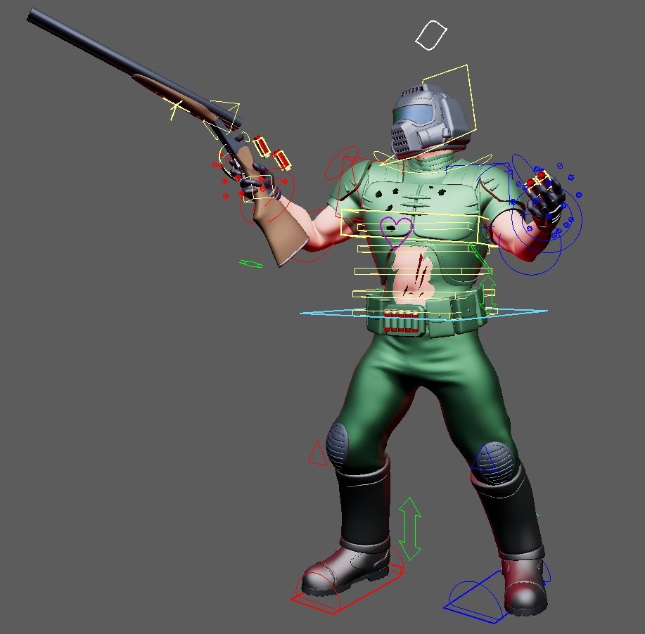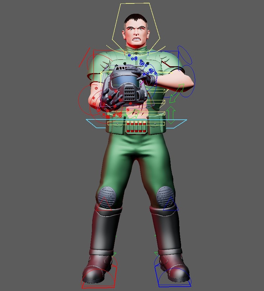 FPS character rig from one of my favorite video game franchises: DOOM. aka the DOOM-guy. Please note: This is a fan re-creation of DOOM GUY from the original DOOM games. All design credit goes to the original studios and copyright holders. This rig is meant for personal use only. Not for resale.
