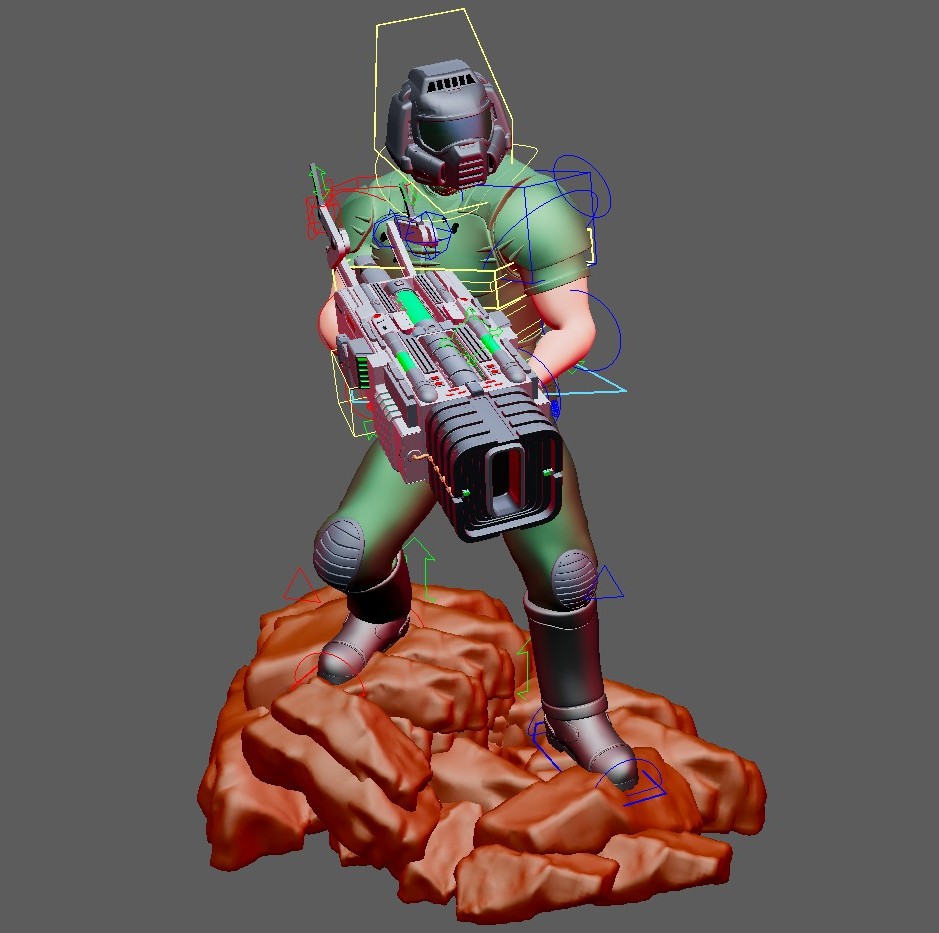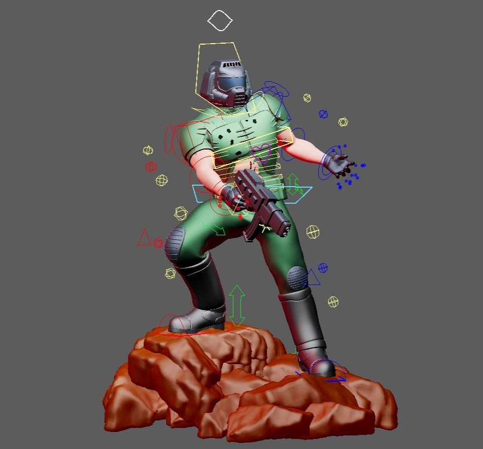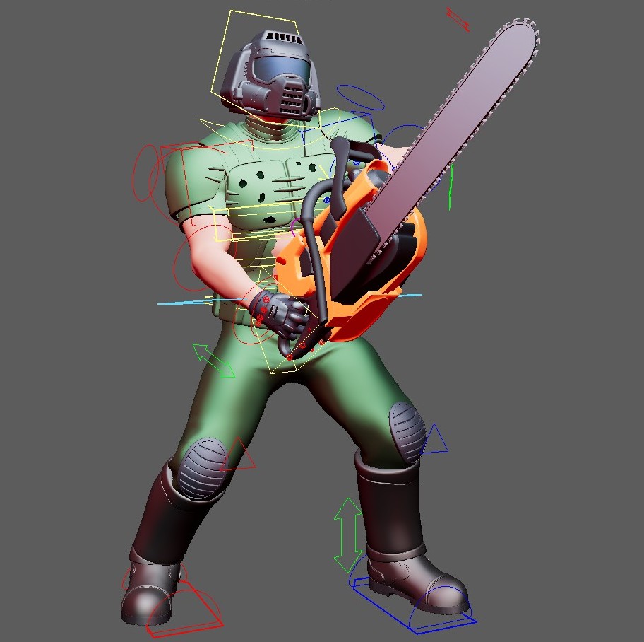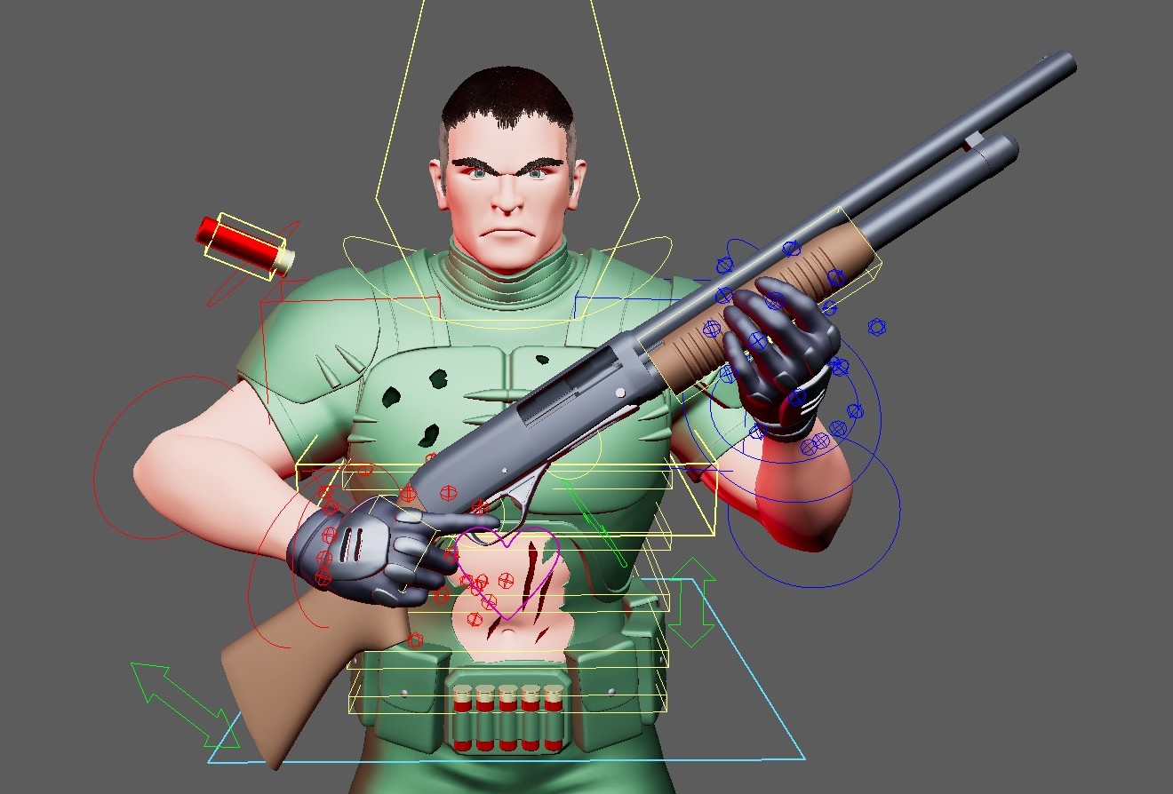 FPS character rig from one of my favorite video game franchises: DOOM. aka the DOOM-guy. Please note: This is a fan re-creation of DOOM GUY from the original DOOM games. All design credit goes to the original studios and copyright holders. This rig is meant for personal use only. Not for resale.