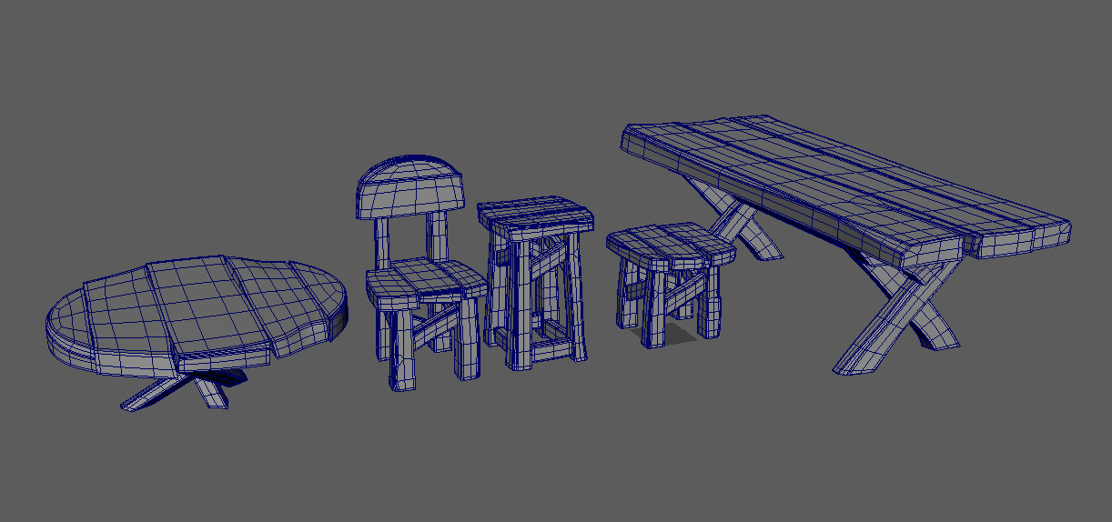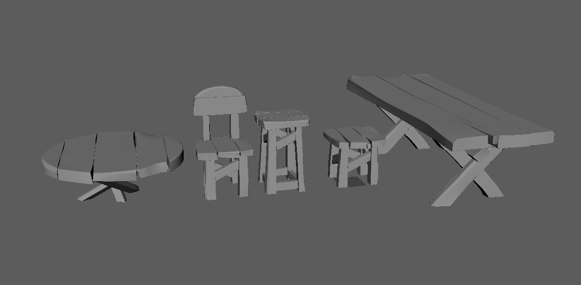 Table, chair, bar chair, coffee table, tabourette. ready for subdiv, UV unwrapped