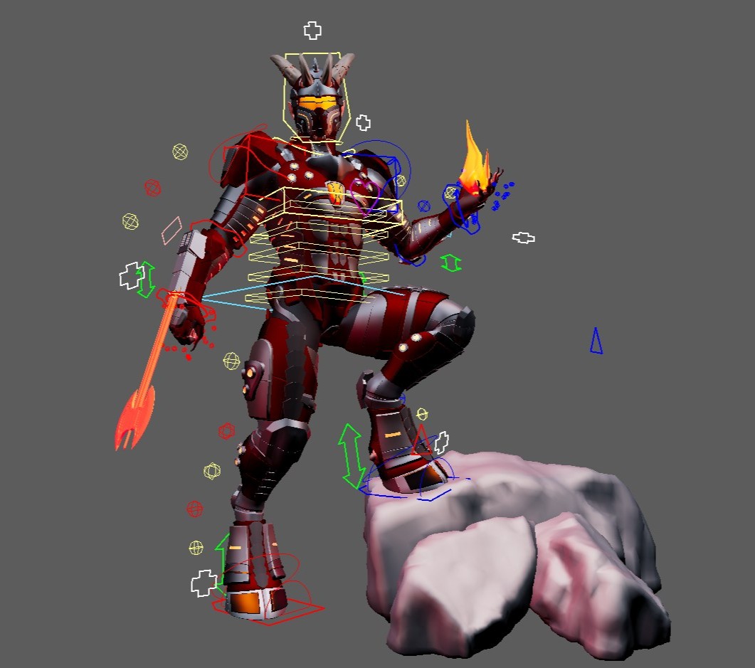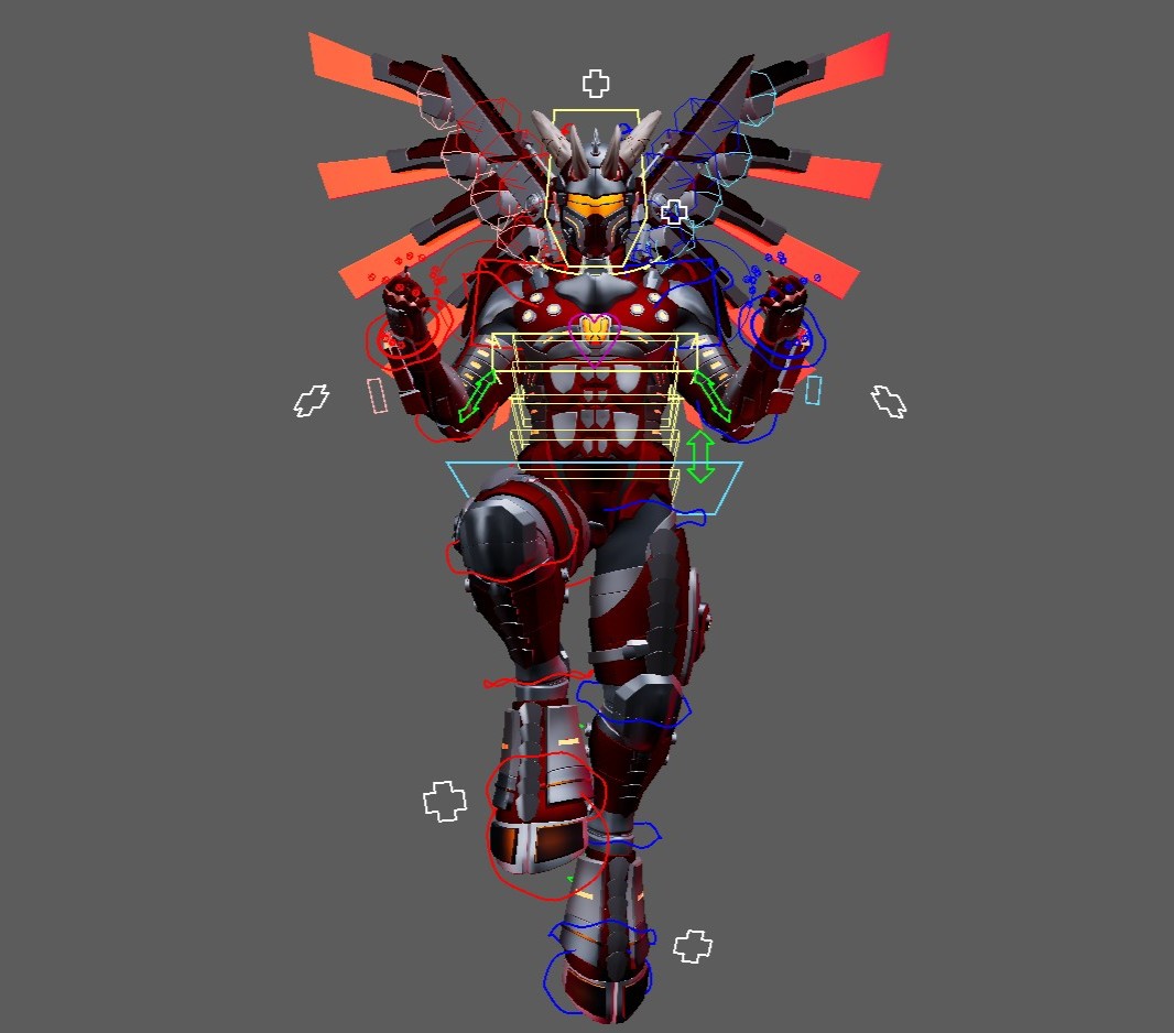 Futuristic Super Soldier Demon rig w/ Armor Transformations. Rigged in Maya 2025. Full Biped character rig. Full Face Rig. Breathe control. Arms come with retractable blades and axe.