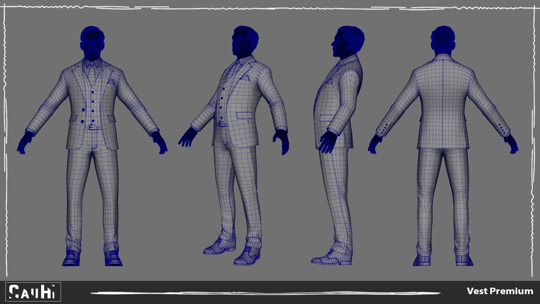 – Realistic 3D model of Men’s Pans with Shirt Blazer and Shoes VestMen’s Pants with Shirt, Jacket and Waistcoat – photorealistic, high-quality 3D model,which can be used in the game industry and in production.- GENERAL:-Ready Subdivision