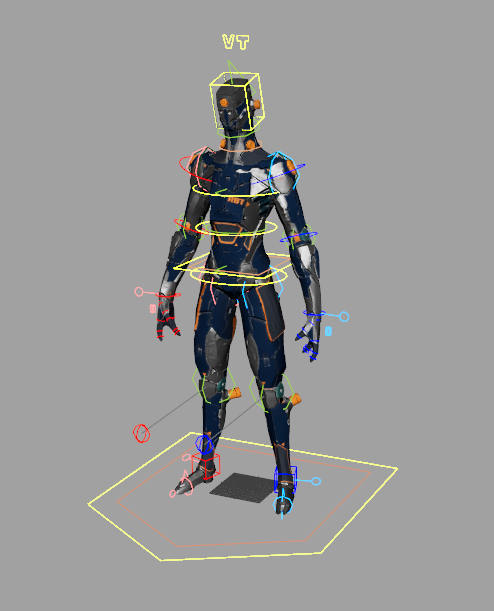 Humanoid robot RBT10 rigged model with UVs, textures.