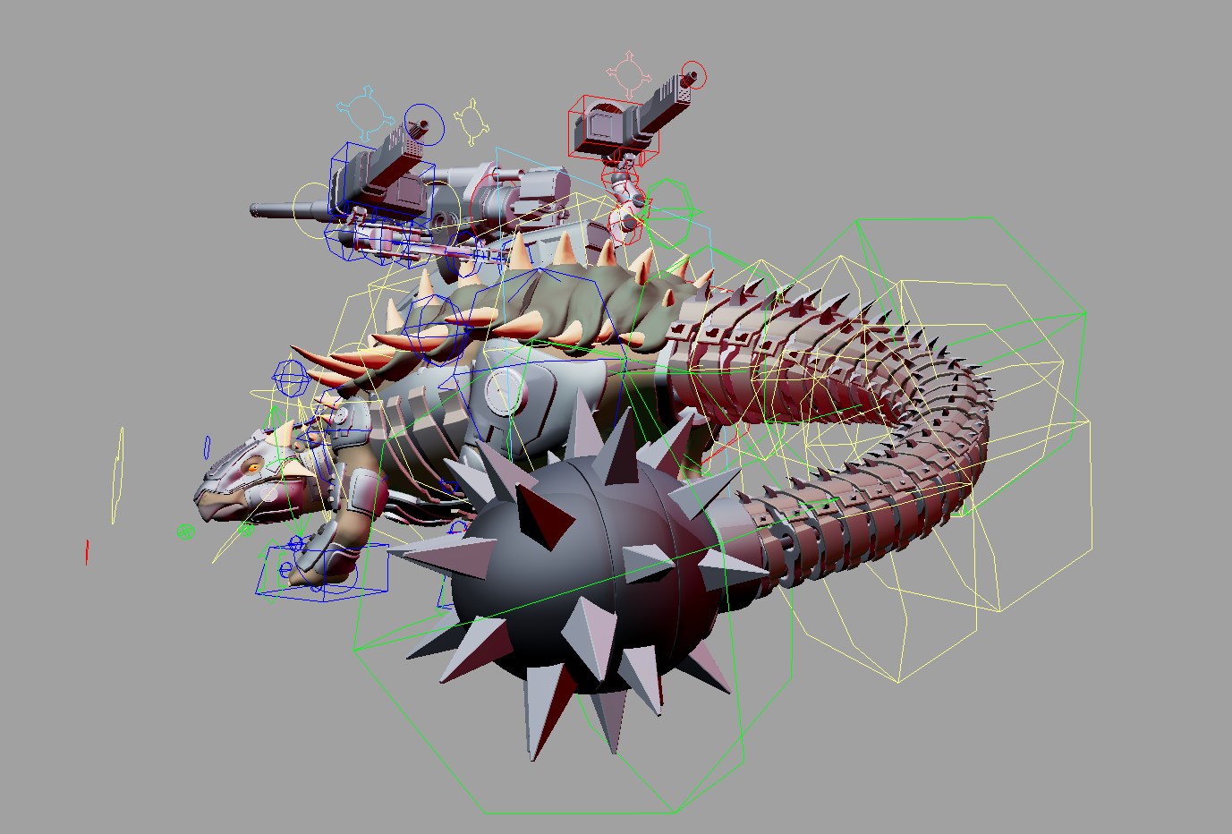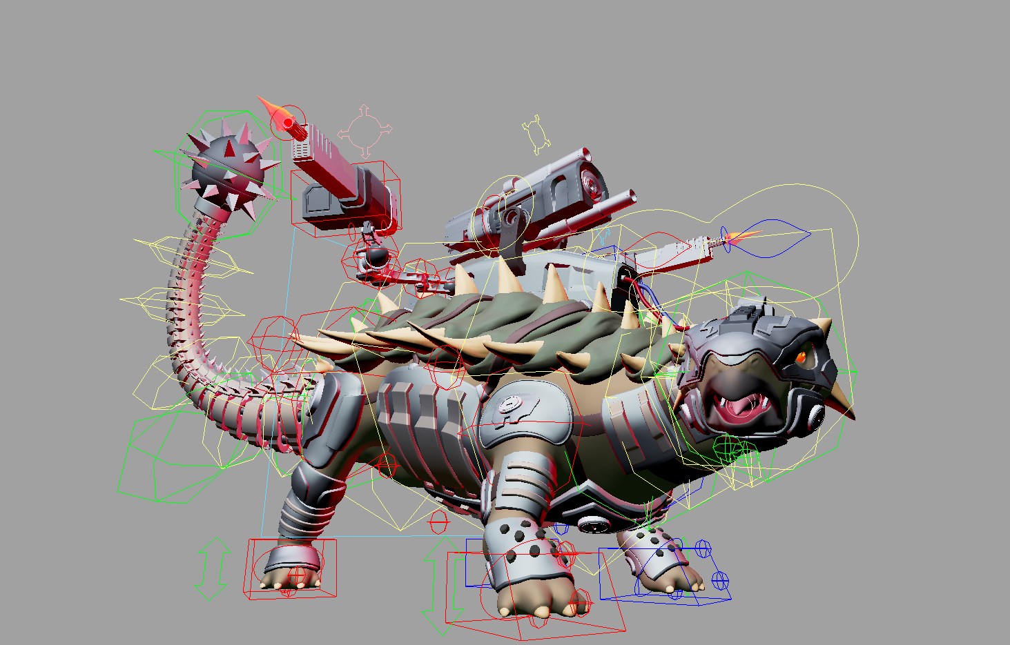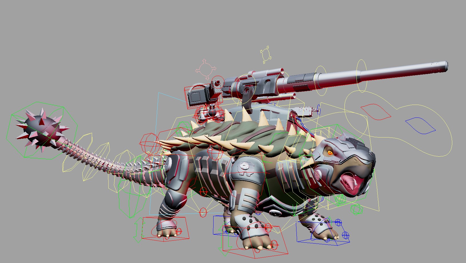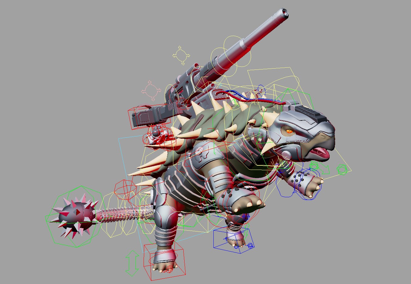 New Weaponized Dino Rig done!!! I’ll admit, I never really liked the Ankylosaurus dinosaur that much. Kinda seemed a bit boring to me as it looked mainly like an oversized turtle. Regardless, I decided to do this one for my next personal work. Design-wise, I’ve always looked at this as being more of a tank-like dinosaur with the crazy amount of spikes it had on its back. So I wanted the look to resemble that of a tank.